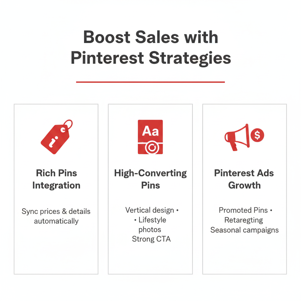 Mobile-optimized pin design directly impacts sales performance. Vertical formats, high-contrast text, and simplified messaging perform better on mobile devices where users make quick scrolling decisions.